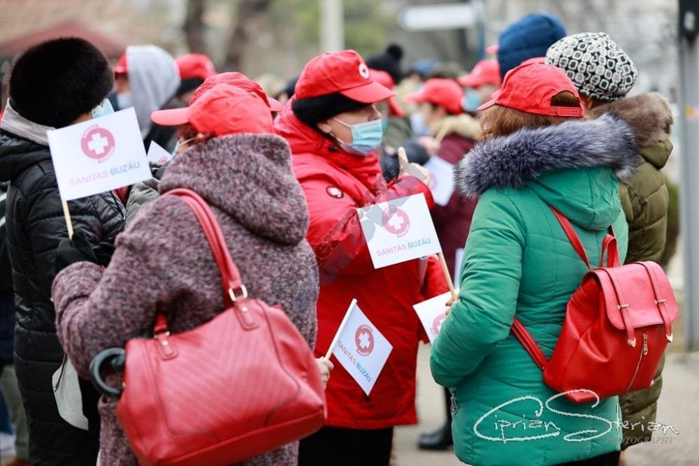 Aproximativ 100 de membri Sanitas din spitalele buzoiene și din centrele de ocrotire socială au protestat, marți, la orele prânzului, în fața Prefecturii Buzău față de efectele Ordonanței 266 prin care le sunt tăiate sporurile și măririle salariale pe care le așteptau.
