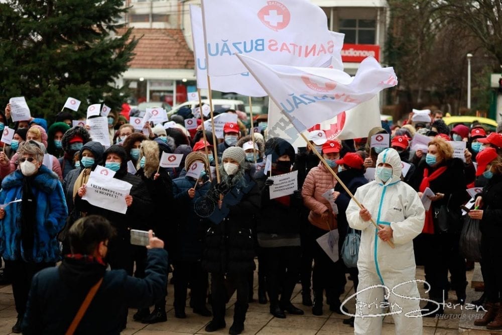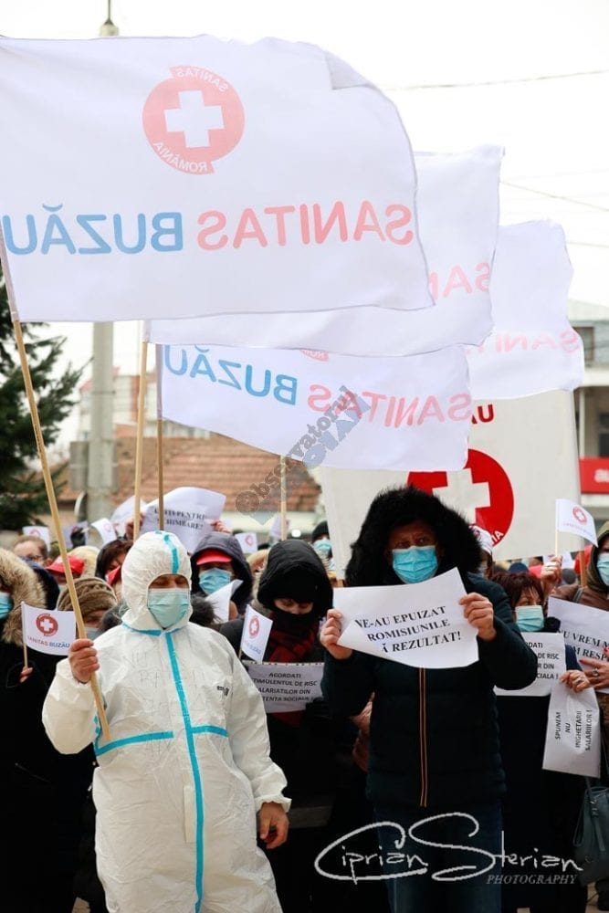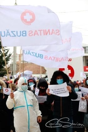 Reprezentantul Sanitas Buzău a spus că numărul celor care și-au dorit să protesteze în stradă era mult mai mare dar că i-a rugat pe aceștia să nu vină mai mult de 100 pentru a nu intra sub incidența restricțiilor impuse de pandemia de coronavirus.