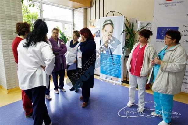 Sindicaliștii aflați în serviciu au întrerupt activitatea timp de două ore și s-au strâns în holul celei mai mari unități spitalicești din județ. Între orele 8.00-10.00 activitatea a fost sistată asigurându-se doar urgențele.