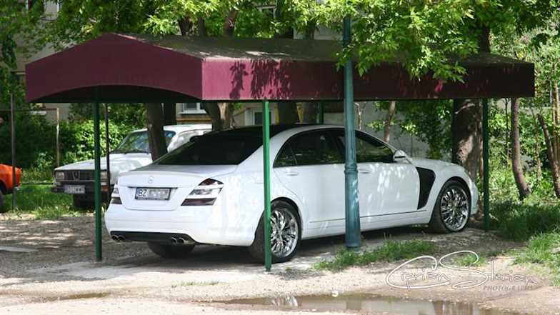 Pentru a-şi proteja investiţia de precipitații dar și de razele soarelui, un buzoian și-a tras, în fața blocului în care locuiește, un adăpost de limuzină. Din economie, construcția amplasată pe un teren moștenit din generație în generație și retrocedat, probabil, pe ultima sută de metri, a fost ridicată cu fonduri reduse tocmai pentru ca proprietarului să îi rămână ceva bani și pentru combustibilul destul de scump.