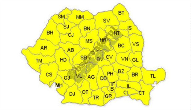 Agenţia Naţională de Meteorologie (ANM) a emis, vineri, o atenţionare meteo COD GALBEN de caniculă şi disconfort termic, fiind anunţate temperaturi de 36-38 de grade, de sâmbătă până luni, mai întâi în Banat, Crişana, cea mai mare parte a Olteniei şi sud-vestul Munteniei, apoi în toată ţara.