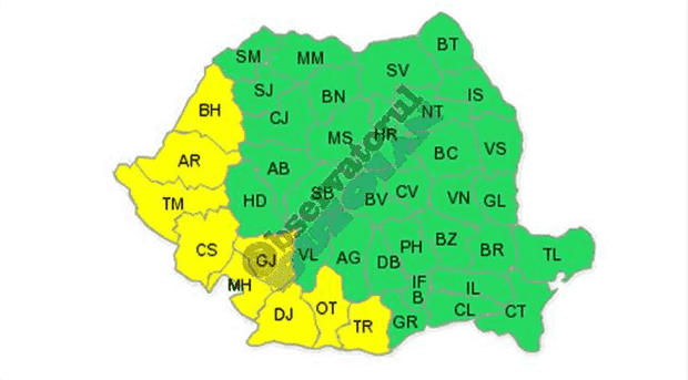 Potrivit meteorologilor, sâmbătă, vremea va fi călduroasă în toată ţara, caniculară în Banat, Crişana, cea mai mare parte a Olteniei şi sud-vestul Munteniei unde se vor înregistra temperaturi maxime de 36…38 de grade. Judeţele afectate sunt Bihor, Arad, Timişoara, Caraş-Severin, Gorj, Mehedinţi, Dolj, Olt şi Teleorman. Indicele temperatură- umezeală (ITU) va depăşi local pragul critic de 80 de unităţi.