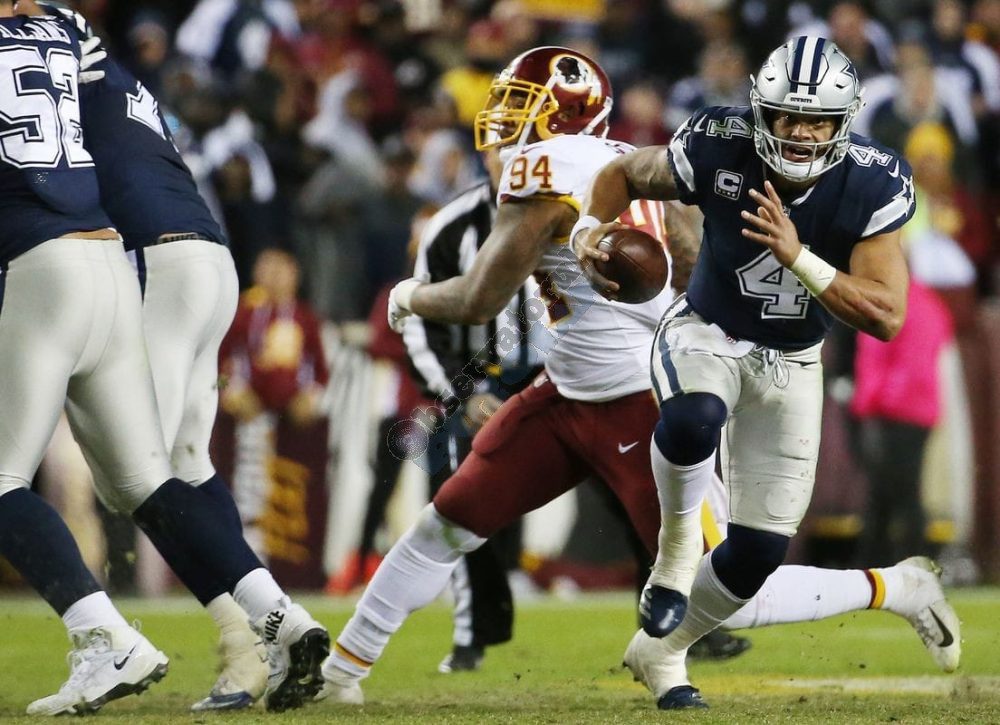 Câteva ore mai târziu, Dallas Cowboys (8-3) a făcut instrucție cu Washington Redskins (4-8) pe teren propriu. Jucătorii din echipa antrenată de către Mike McCarthy și-au dominat adversarii de la primul fluier până la cel final, reușind să câștige cu scorul de 45-10, după ce au marcat 25 de puncte în al patrulea sfert al întâlnirii de pe AT&T Stadium. Dallas rămâne pe locul doi în NFC East, poziție pe care e greu de crezut că o va pierde în fața lui New York Giants (4-8).