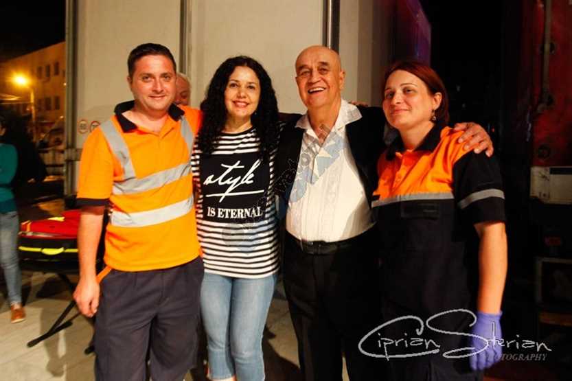 După ce rana lui Benone Sinulescu a fost dezinfectată și pansată, artistul le-a mulțumit angajaților de la Ambulanță, după care, la cererea acestora, a acceptat să se pozeze alături de ei, chiar înainte de intrarea în scenă.