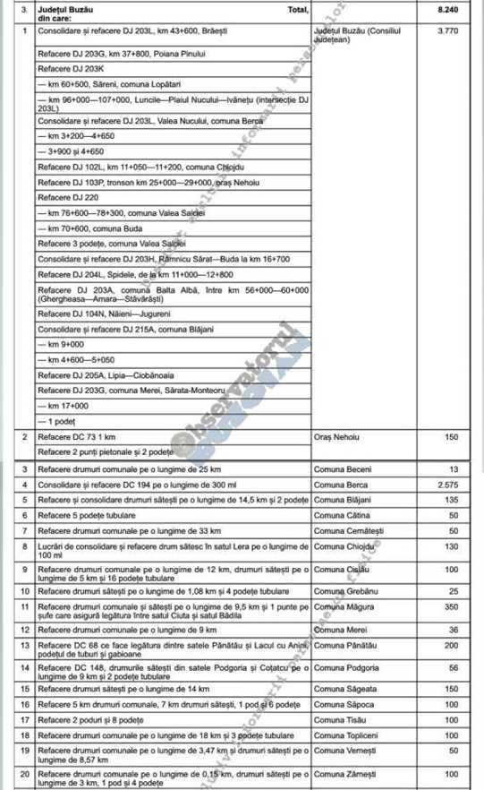 Județul Buzău este campion la alocările bugetare în urma demersurilor făcute de Consiliul Județean și Prefectura Buzău. Guvernul a alocat, vineri, o nouă tranșă de bani pentru refacerea infrastructurii distruse de calamitățile din vară abătute asupra județului. Astfel, din cei 8,240 milioane de lei care au fost alocați județului Buzău, cea mai mare sumă 3, 770 milioane, va ajunge la Consiliul Județean, care are o listă cu 13 drumuri județene afectate de inundații pe raza comunelor Brăiești, Valea Salciei, Tisău, Lopătari, Berca, Nehoiu, Merei, Buda și Blăjani.