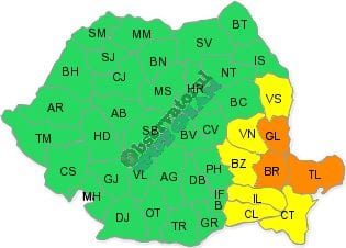 În judeţele Brăila şi Tulcea cantităţile de apă vor depăşi local 50…60 l/mp, iar în judeţul Galaţi mai sunt posibile cantităţi de apă de 30…40 l/mp.
