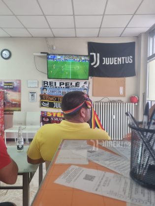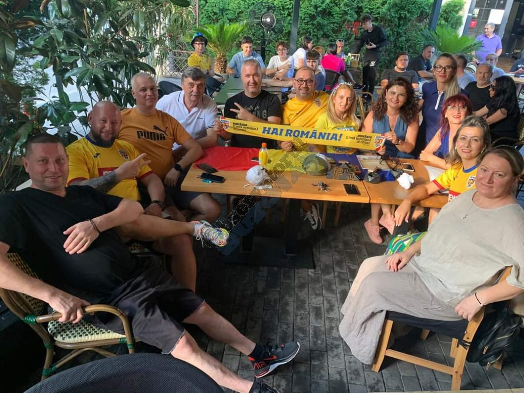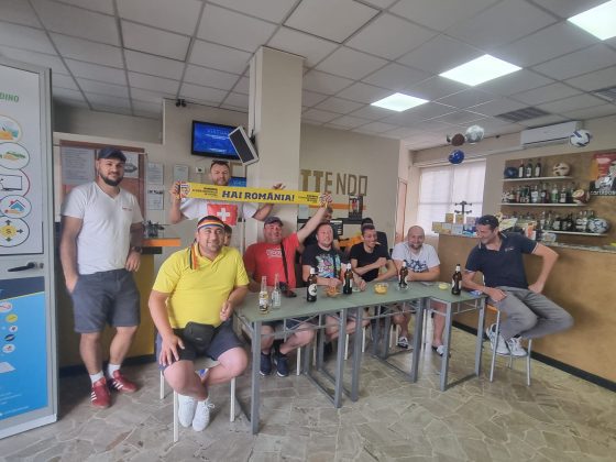 Grupul de românași care se strânge mereu la barul lui Sorin Frîncu din San Damiano d’Asti, plus câțiva albanezi rămași fără echipă la EURO, flutură de zor fularele și eșarfele tricolore sperând că în fazele superioare vom reuși să eliminăm chiar Italia, țara lor adoptivă. Tot la una dintre terasele de pe bulevard au văzut meciul și grupul lui Vali Andriciuc, Cristina și Radu David. Bere multă, veselie și optimism pentru calificare din primul până în ultimul minut.