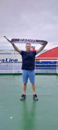 Romi Amaricăi lucrează în marina comercială, iar la ora meciului traversa Canalul Mânecii și era nervos că semnalul de net era cam slăbuț. N-avea tricoul galben, dar se mândrea cu un fular al Rapidului.
