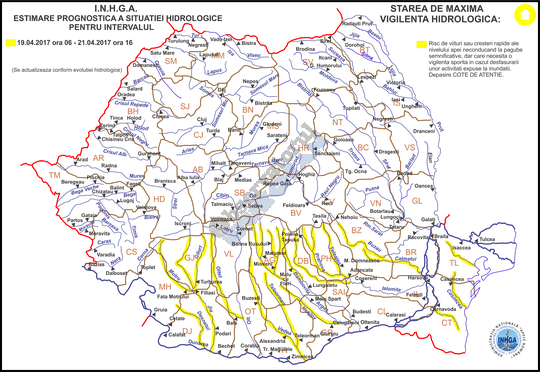 Județul Buzău intra joi sub o avertizare hirologică cod galben de inundații rezultate ca urmare a ploilor ce urmează a se înregistra și a scurgerilor de pe versanți. Astfel, conform hidrologilor, începând de joi noapte şi până vineri la ora 16.00, a fost emisă o avertizare pentru râurile din bazinele hidrografice Buzău, pe afluenţii aferenţi sectorului din aval de staţia hidrologică Nehoiu (judeţul Buzău), Călmăţui (judeţele Buzău şi Brăila) şi râurile mici din Dobrogea (judeţele Tulcea şi Constanţa).