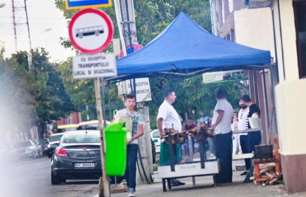 Familial ui Liviu Andronache, zis Vanghele a fost amendată, de polițiștii locali pentru tulburarea liniștii publice și pentru amenajarea pe trotuarul din fața casei a unui proțap la care au fost fripți doi berbeci.