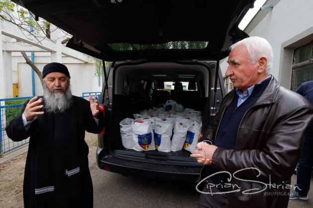 Pachetele au fost aduse de președintele CJ Petre Emanoil Neagu care a și stat de vorbă cu câțiva dintre memebrii organizației adunați în fața sediului alături de preotul Mihail Milea și de președintele ConsiliuluI Județean al Persoanelor Vârstnice