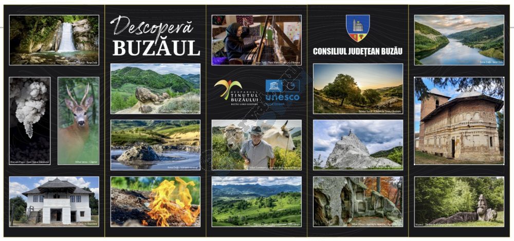 Sub sloganul “Descoperă Buzăul”, vom face cunoscută diversitatea ofertei turistice a județului Buzău, fie că vorbim despre atracții turistice unice în România (Muzeul Chihlimbarului Colți, Muzeul ”Tabăra de sculptură Măgura”, Vulcanii noroioși etc), comori spirituale ale județului, experiențe culturale și culinare și, nu în ultimul rând, despre Geoparcul Internațional UNESCO Ținutul Buzăului.