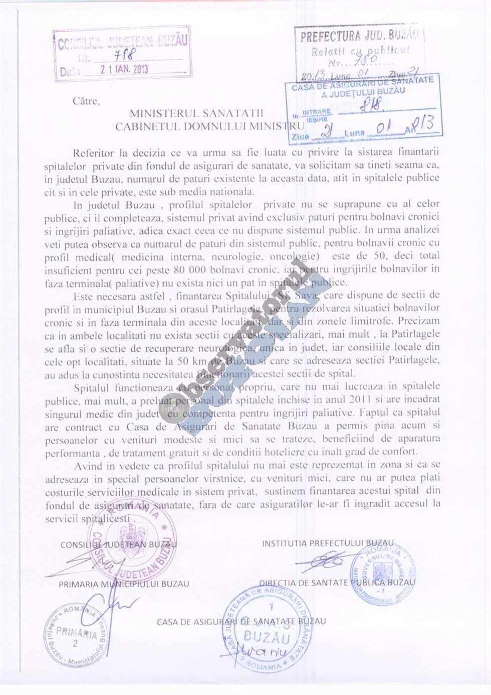 Deputatul George Scutaru a adus în fața ministrului un memoriu semnat de Consiliul Judeţean Buzău, de Primăria Municipiului Buzău, Instituţia Prefectului, Direcţia de Sănătate Publică Buzău şi Casa de Asigurări de Sănătate prin care se arată dorința de a se menține și pe viitor contractul Spitalului Sfântul Sava din Buzău cu Casa județeană de Asigurări de Sănătate.