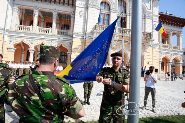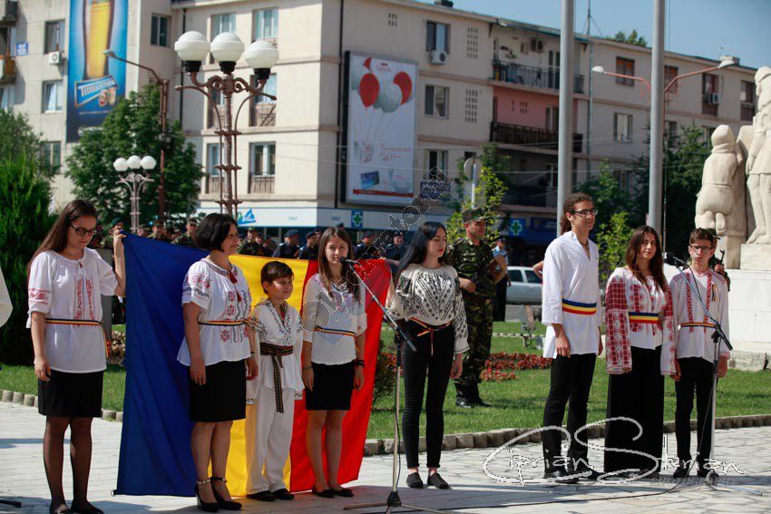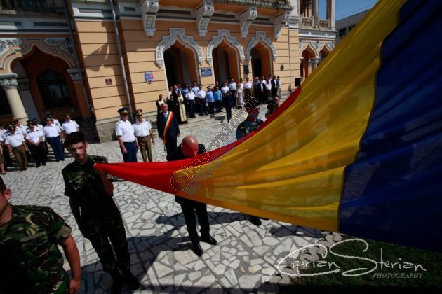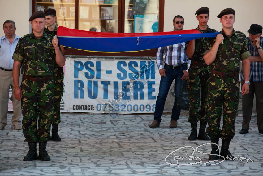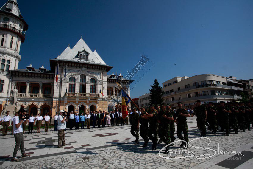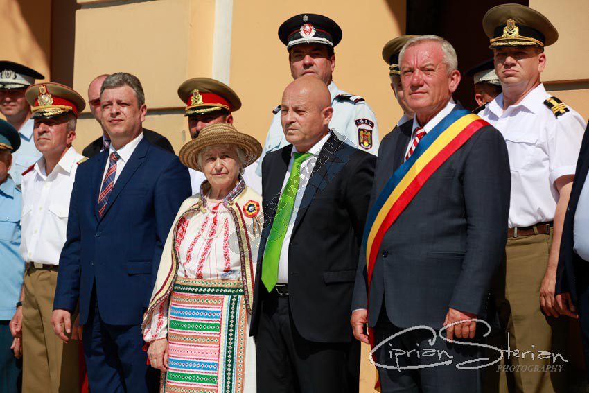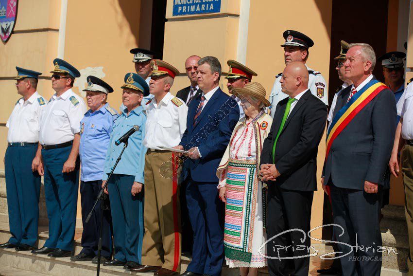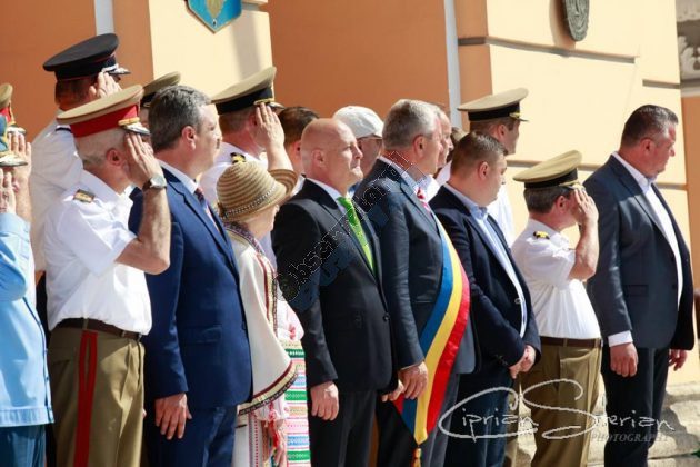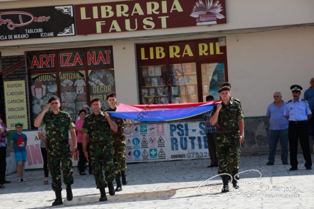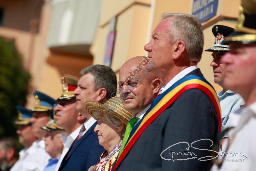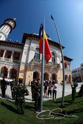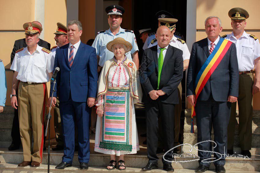 Luni dimineață, același drapel a fost adus în Piața Dacia și, după un scurt mesaj al Ministrului Administrației și Internelor și un moment artistic, a fost arborat pe catargul din fața Primăriei, nu înainte de a fi sărutat de mai marii județului și de comandantul Diviziei 2 Infanterie „Getica”.
