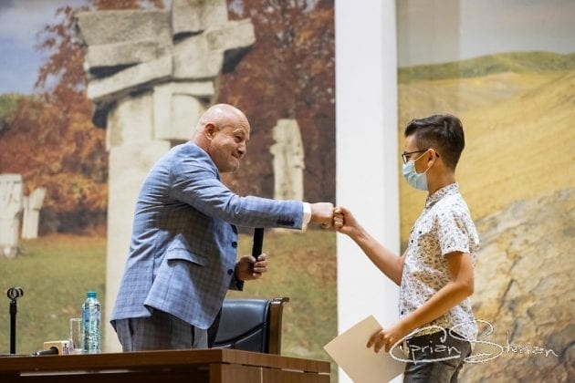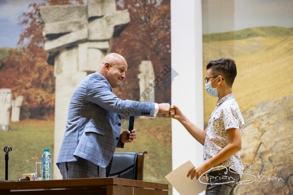 „Este o zi emoționantă pentru noi, să vedem că într-o perioadă atât de dificilă există copii care ne dau siguranța că viitorul nostru, al României, este asigurat. Vreau să mulțumesc cadrelor didactice care v-au pregătit, Inspectoratului Școlar, părinților voștri și vouă, care meritați tot sprijinul nostru. Gestul nostru de astăzi este doar un mic gest de recunoaștere. Eu am puterea să recunosc că autoritățile locale și cele centrale încă fac mult, mult prea puțin pentru cadrele didactice și pentru elevi. Sper ca măcar pandemia asta să ne facă să prețuim lucrurile importante. Poate inversăm scara valorilor, după niște criterii corecte. Premiile în bani pe care vi le acordăm astăzi, câte 3000 lei de persoană, sunt doar o mică picătură într-un ocean. Mai trebuie să știți că fără sprijinul și votul consilierilor județeni, indiferent de culoarea lor politică, nu am fi putut acorda aceste premii”, a precizat președintele Consiliului Județean Petre Emanoil Neagu.