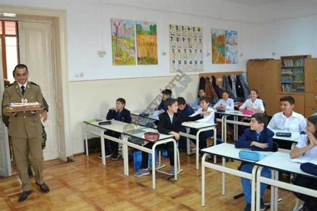 De asemenea, colegii tatălui său i-au adus în dar, chiar în fața colegilor de clasă, un tort pe care l-au servit împreună alături de tradiționalele urări de La mulți ani!