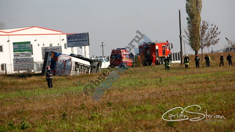 În urma impactului, șoferul nu a fost rănit. Din cisternă se scurg cantități mici de motorină direct pe câmp. Zona este izolată de pompieri care sunt în zonă cu 2 autospeciale și un echipaj SMURD în timp ce polițiștii au închis circulația. DE asemenea, la locul accidentului au ajuns și comisarii de la Garda de Mediu.