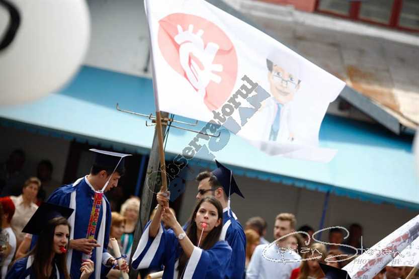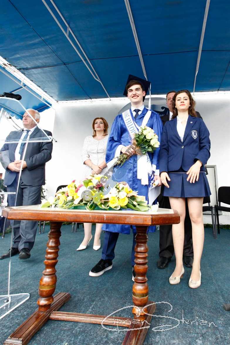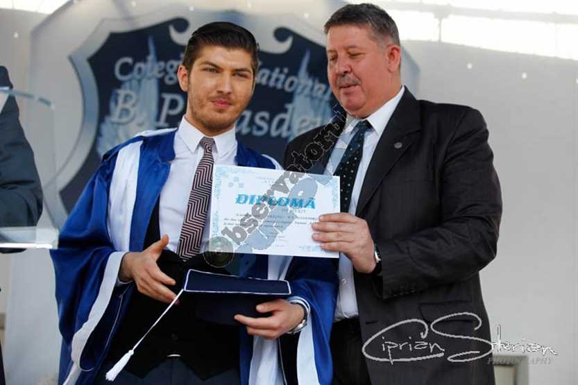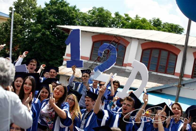 Tinerii absolvenți îmbrăcați în robe albastre și urmăriți cu atenție de părinți, s-au strâns în careu în curtea interioară a colegiului au ascultat imnul Gaudeamus, au scandat și au fluierat susținându-și colegii premiați de către conducerea școlii dar și pe șeful promoției 2012-2014, ȘerbanLiviu Ioan care a absolvit cei 4 ani de liceu cu media 9,97.