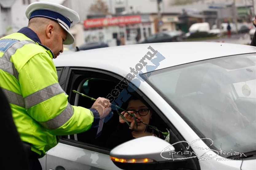 Șoferițele au fost trase pe dreapta și întâmpinate cu flori, mărțișoare și mesaje preventive și niciuna dintre conducătoarele auto nu a primit puncte amendă. Acțiunea s-a desfășurat în mai multe intersecții din oraș și va fi repetată, cel mai probabil și peste o săptămână când se sărbătorește Ziua Femeii.