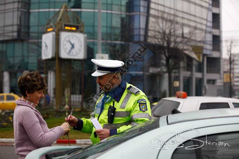 Polițiștii rutieri au amendat, marți, cu flori doamnele și domnișoarele aflate la volanul autoturismelor așa cum au făcut-o în ultimii ani.
