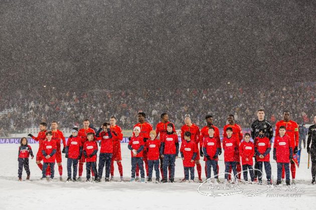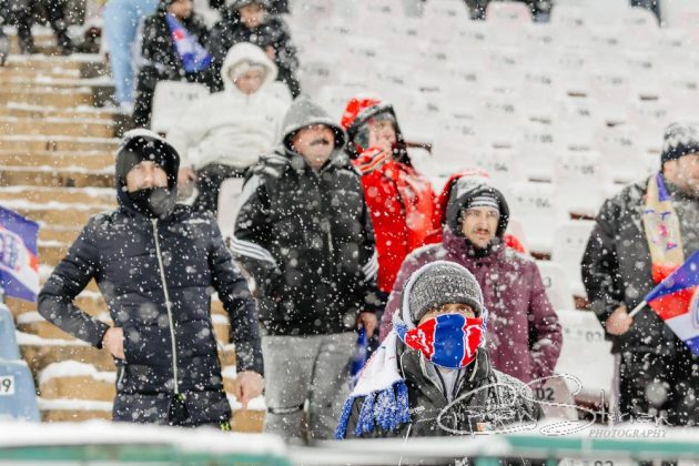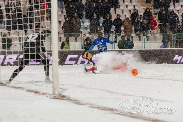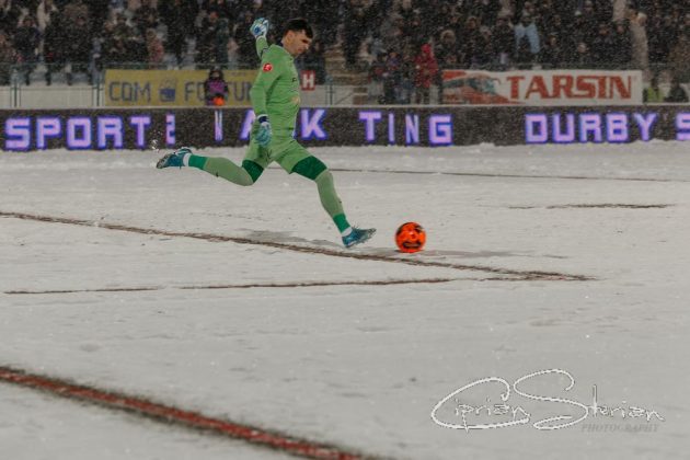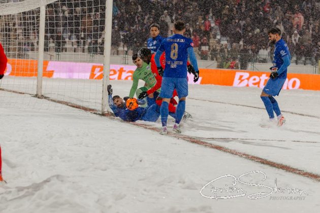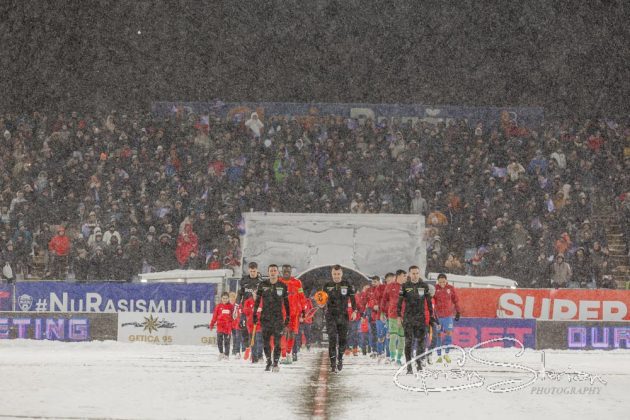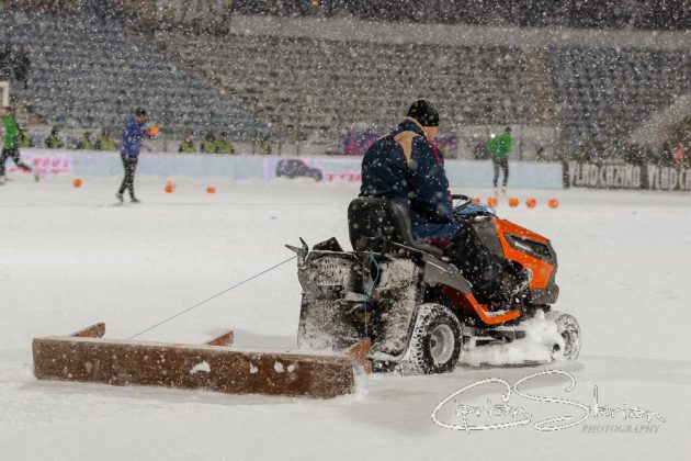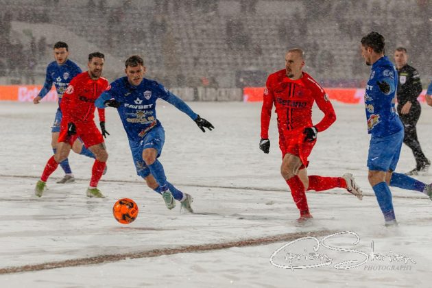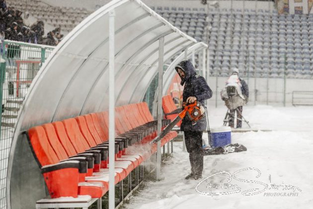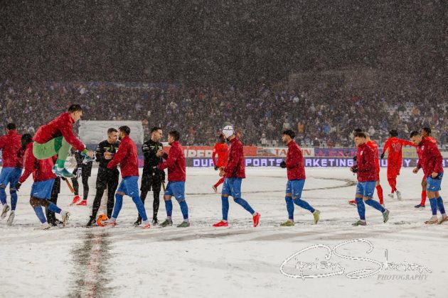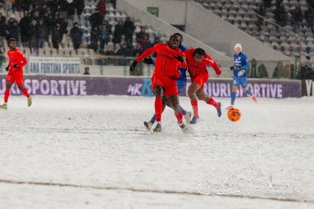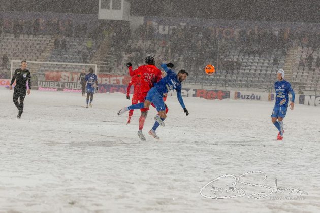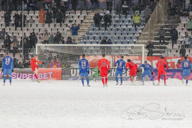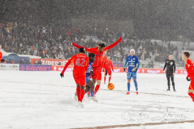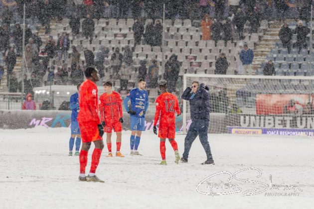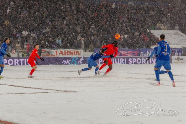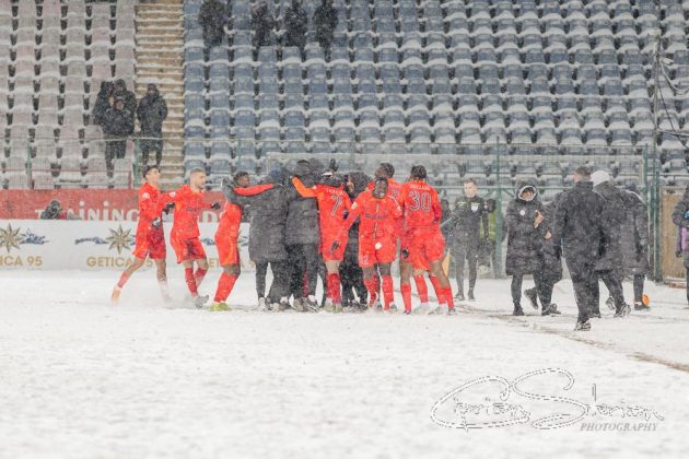 În ciuda unei deszăpeziri „la banchetă” prestată de angajații clubului până la debutul partidei, duelul s-a dat pe un teren acoperit de omăt și sub o ploaie de fulgi de care acoperea rapid tușele trasate în glumă. Elevii lui Elias Charalambous au reușit să se impună în a doua repriză când arbitrul le-a acordat un penalty iar jucătorii Gloriei, ca să nu fie mai prejos, le-au făcut și ei cadou un gol.