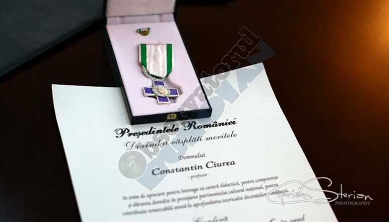 Profesorul Constantin Ciurea de la Colegiul National B.P. Hasdeu a primit astăzi din partea prefectului județului Buzău, Ordinul « Meritul Cultural în grad de Cavaler pentru Cercetare Știintifică». După ce în primăvara anului trecut, profesorul Constantin Ciurea, ales consilier municipal pe listele PDL, a ratat titlul de cetățean de onoare, acum meritele sale au fost recunoscute de președintele României care a considerat că profesorul buzoian merită decorat pentru realizarea celor cinci volume ale lucrării „Decorații România”.