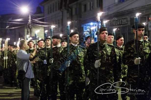 La ora 21.00, câteva sute de militari purtând în mână torțe aprinse au plecat în marș către sediul Diviziei 2 Infanterie „Getica” urmați de aproape 500 de buzoieni, în mare parte copii veniți în Piața Dacia pentru a vedea focul de artificii. Alături de buzoieni au făcut deplasare pe jos până la sediul comandamentului generalul Lucian Foca, foștii comandanți ai structurii militare de la Buzău, generalii Visarion Neagoe și Nicolae Roman, primarul Constantin Toma și viceprimarii Ionuț Apostu și Andrei Neder.
