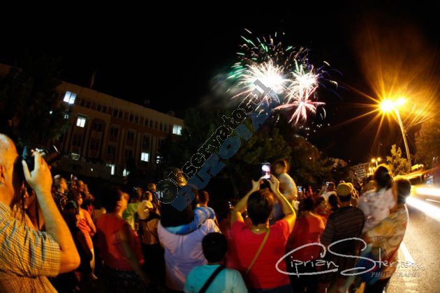 După retragerea militarilor, buzoienii urmărit din stradă focul de artificii în timp ce oficialii au privit spectacolul de lumini de pe cer de la balconul situat la primul etaj al sediului Diviziei 2 Infanterie „Getica”.