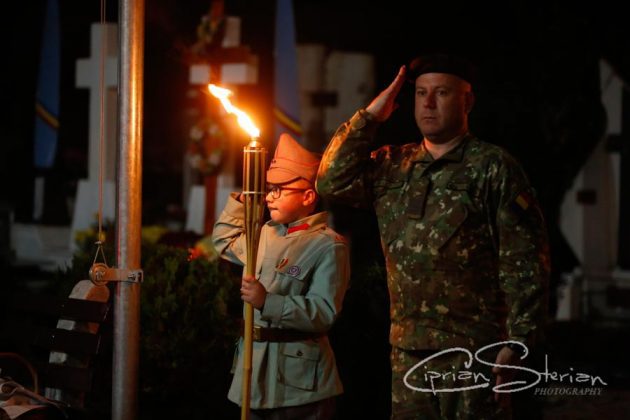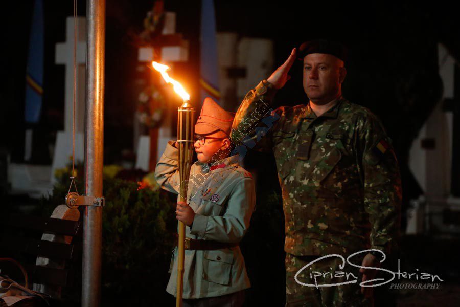 Peste o mie de elevi de la școlile și liceele din oraș alături de militari din Garnizoana Buzău și oficialitățile județului au participat, joi seară, la ceremonialul militar și religios organizat în Cimitirul Eroilor.