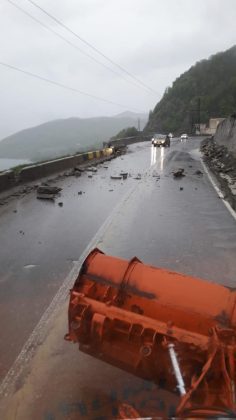 Probleme au fost și pe DN 10 la Siriu acolo unde pe carosabil au căzut pietre de pe versanți iar drumarii au fost nevoiți să oprească circulația până la curățarea șoselei.