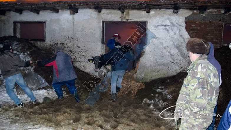 UPDATE: Incendiul nu a fost stins până duminică dimineață. Surse din rândul anchetatorilor susțin că est posibil ca incendiul să fi fost provocat intenționat. Se pare că numărul victimelor este mai mic decât au apreciat inițial pompierii. Astfel, se pare, că în incendiu au ars 15 vaci, 48 de bovine si 500 de porci fiind salvati. DE asemenea, au ars circa 400 de tone de furaje, valoarea prejudiciului urmând să fie stabilită după lichidarea focului.