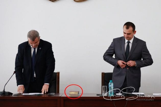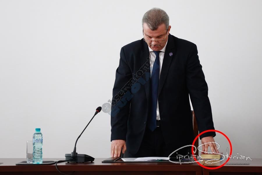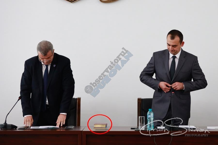 După citirea de către oficialul MAI a ordinului de numire temporară în funcția de subprefect, Leonard Dimian a dat citire grăbit jurământului de credință în timp ce Teodor Iulian Gheorghe i-a strecurat discret Biblia și Constituția sub mâna stângă. Ulterior, Dimian a dat citire unui discurs pregătit din vreme prin care a mulțumit factorilor responsabili  pentru numirea în funcția pe care o ocupă.