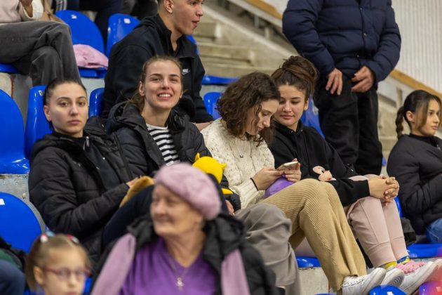 * printre spectatori, fetele de la Gloria, care abia terminaseră antrenamentul la ora 17. Și aveau și ele jucării în dotare!