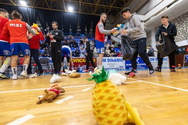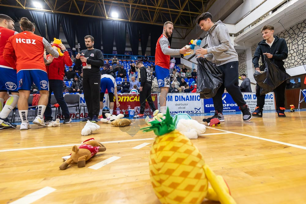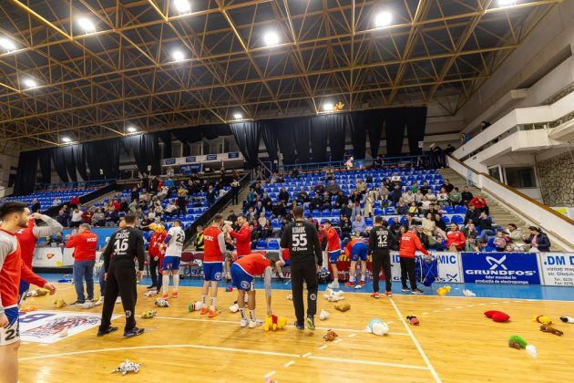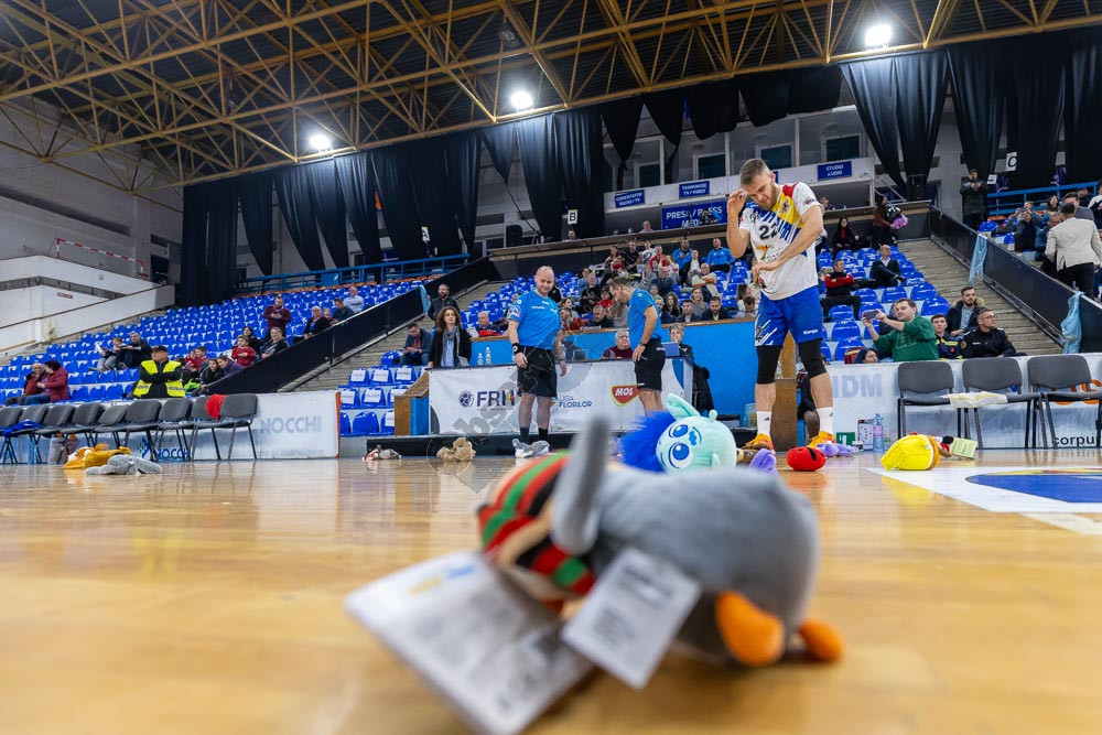* povestea jucăriilor de pluș aruncate de spectatori pe parchetul Sălii Sporturilor, înainte de meci, a continuat și anul acesta. Cu succes, că sunt vreo 10-15 saci mari de plastic plini cu tot felul de maimuțoi care vor merge spre copii mai puțin răsfățați de soartă.