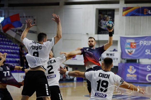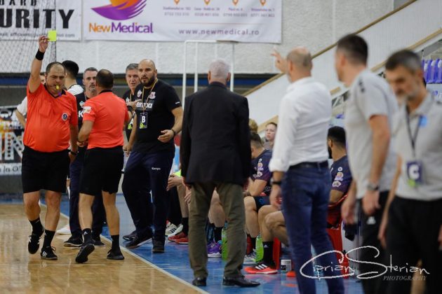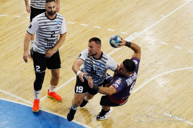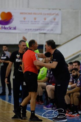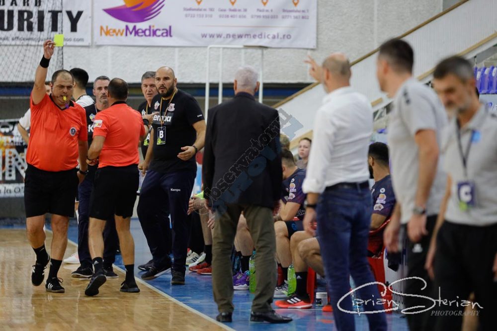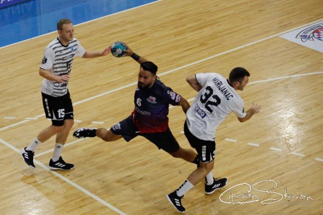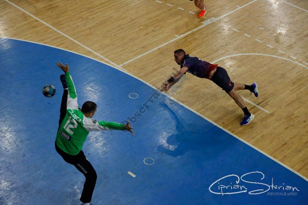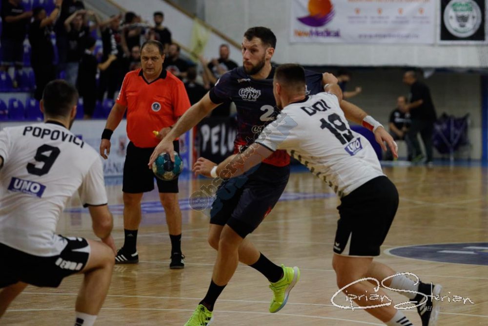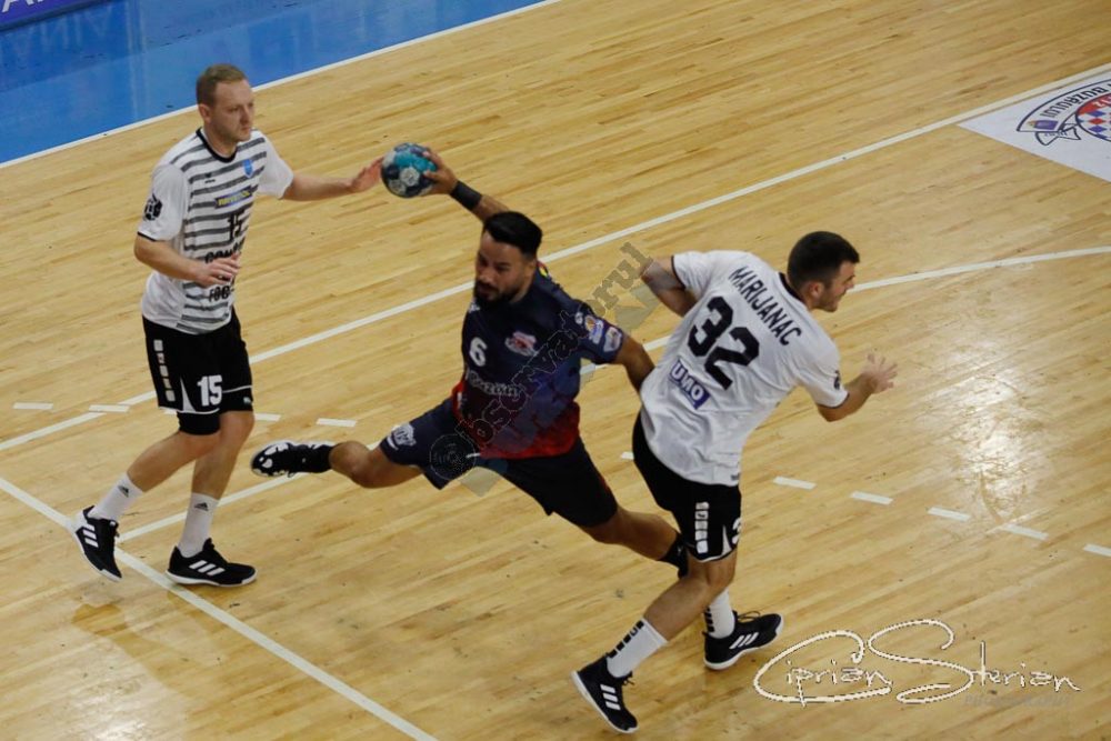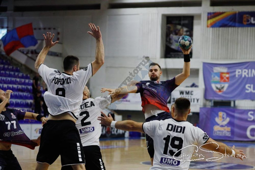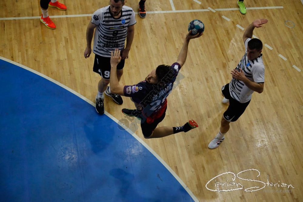 Ambițiile și nervii din cele două tabere s-au arătat la față chiar din minutul 3, atunci când sângele fierbinte al spațiului ex-iugoslav a adus la rampă pe „vrânceanul” Marijanac contra unui trio buzoian venit din aceeași zonă geografică, Vuk-Pelidija-Glendza. S-a lăsat cu câte o eliminare din fiecare tabără, iar scorul a mers aproape cap la cap până la mijlocul reprizei. Când am avut două goluri avans, dar am irosit două atacuri consecutive ce ne-ar fi putut umple un pic plămânii cu aer de victorie. Și tot așa până când oaspeții au reușit să treacă în avantaj, 10-11 în min. 21. Barele porții adverse, trei șuturi la rând (și apoi încâ una la 12-14!) se cereau unse cu mir la pauză, dar de unde să aduci așa ceva într-o seară de duminică? Istoria primei părți se scrie într-un final plin de nervi, cu ambii arbitri cautând nod în papură alor noștri, cu antrenorul Pero Milosevic sub forma unei bombe atomice și un 13-16 pe tabela de marcaj.