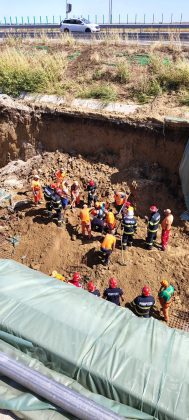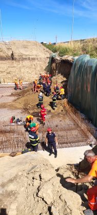 Salvatorii acționează pentru extragerea victimei, aceasta fiind prinsă la o adâncime de aproximativ 7-8 metri sub pământ.