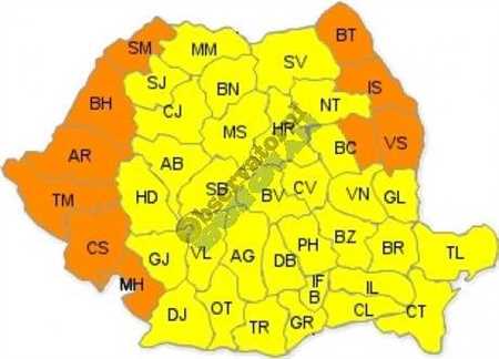 Meteorologii avertizează că urmează 2 zile cu temperaturi de 38 de grade în 10 judeţe. Satu Mare, Bihor, Arad, Timiş, Caraş-Severin, Mehedinţi, Botoşani, Iaşi, Bacău şi Vaslui se vor afla sub avertizare cod portocaliu.
