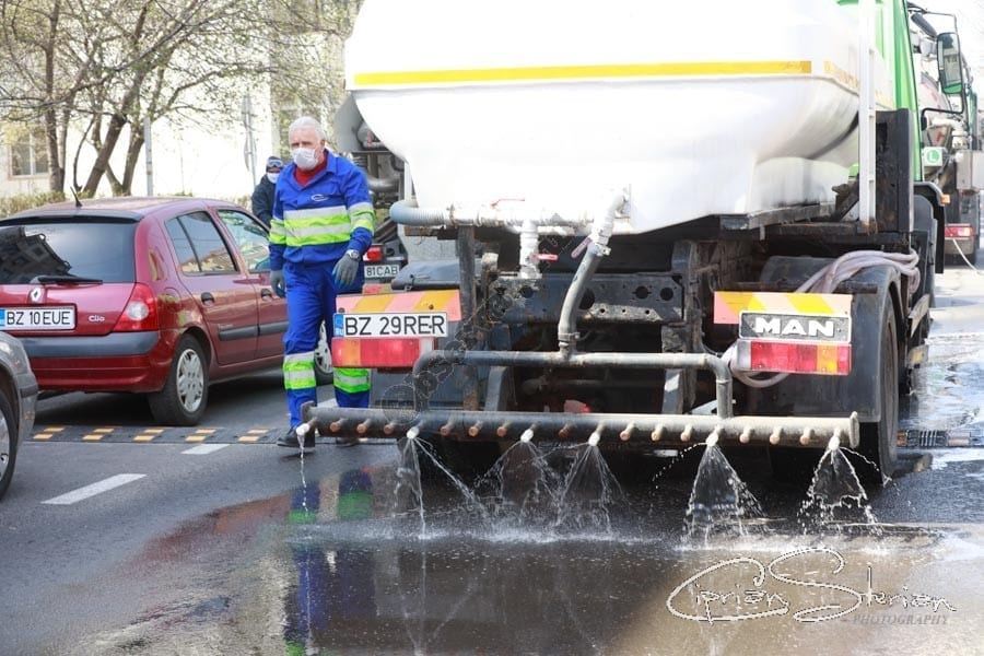 „Am început o dezinfecare totala a municipiului Buzău atât străzi cât și trotuare cu 8 echipaje. 6 de la Compania de Aapă, curățitoarele de canal cu 6 mii de litri de hipoclorit dizolvate 1 la 5 și cu două mașini de la RER. Cei de la RER se ocupă de străzi iar cei de la Compania de Apă se deplasează până în scara blocului, trotuare pentru că s-a constatat că acest virus se transmite inclusiv pe tălpi. Remanența acestor substanțe este de 7 zile. Speram ca în 7 zile să facem tot orașul iar apoi să o luam de la capăt”, a spus primarul Constantin Toma.
