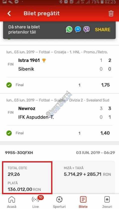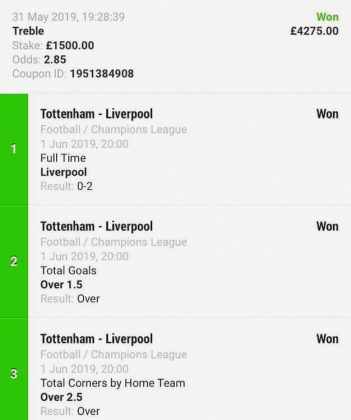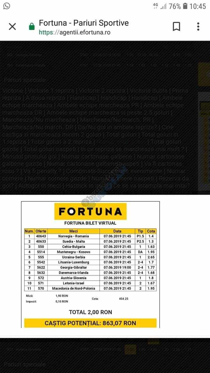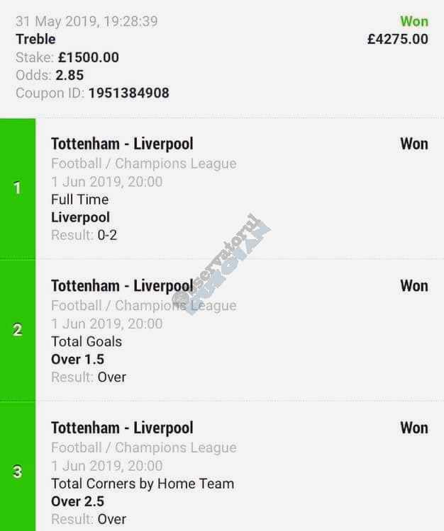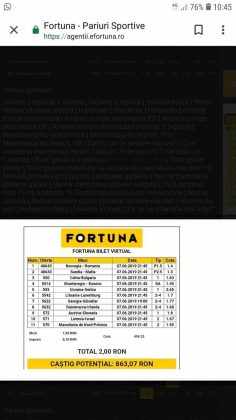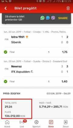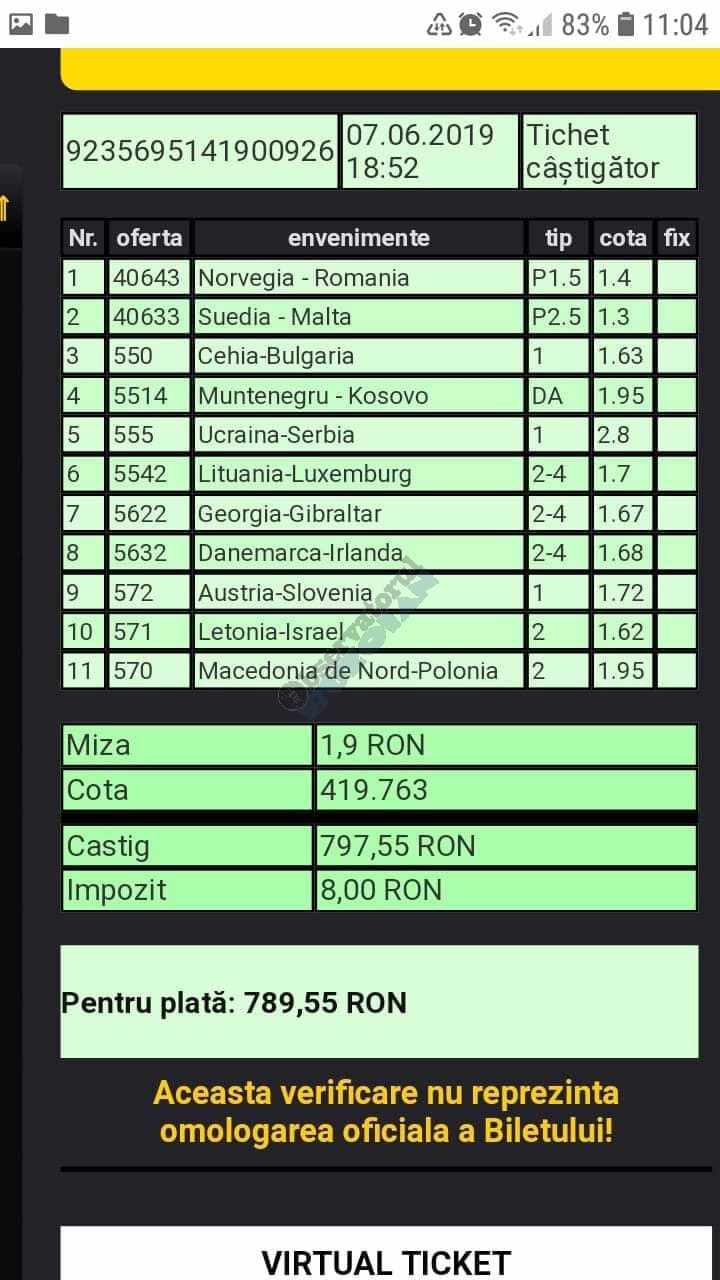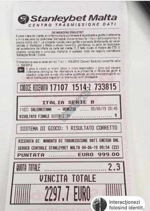 Oameni buni, pentru că e vorba de ultimul episod al sezonului 2018-2019, am pregătit o galerie foto cu bilete de-a dreptul excepționale. Și ca sume câștigate, dar, mai ales, ca maniera de joc. Hai să ne bucuram de ele, dar și pentru cei care au încasat bănuții! Deschidem cu poza nr. 1, un bilet postat de Mihai Petre, care tocmai ce ne spunea că a revenit în business după câteva săptămâni de pauză. Și a revenit cu succes, urmăriți codul de Superbet ca să vedeți inspirație la bătrân. Apoi, cu foto nr. 2 vine prietenul nostru Alin Ticu postând biletul unui văr ce lucrează pe un vas de croazieră și care s-a riscat să joace 1000 de euro pe victoria Salernitanei în turul barajului de rămânere în Serie B. 2-1 a fost scorul, dar în prelungirile meciului Venezia a ratat egalarea din fața porții adverse și doar parada incredibilă a portarului ciociarilor a făcut ca cei peste 2000 de euroi să se lăfăie în portofica pariorului curajos! Alt curajos este Chiriță Lupul Singuratic. Și el joacă 1000 de euro pe biletele nr. 3 și 4, este absolut sigur de victoria lui Liverpool în finala Ligii, și își dublează banii. Simplu și elegant. Ira Irinel, posesorul biletului nr. 5 m-a lăsat fără aer pentru câteva secunde. A pariat 1500 de lire pe trei evenimente din același meci al lui Liverpool, victoria cormoranilor, total goluri și cornerele lui Spurs, iar câștigul e de toată lauda, aproape 4300 de sterline! Și Mihai Banditu cu biletul nr. 6 merge pe mâna băieților lui Klopp și își trece și el în cont o amintire frumoasă după meciul de la Madrid, și-a dublat cele 500 de lire pariate. Biletul nr. 7 e al unui ghinionist, nu se putea să nu avem și așa ceva! Nache Laurențiu e numele lui și pierde un singur eveniment din 11, dar în ce mod! Joacă “gol în ambele reprize” la amicalul Columbiei, ăștia dau 3 goluri în prima parte și uită s-o mai facă în cea de-a doua. Iar 1200 de lei se transformă în doar 20, din păcate! Acum îl avem drept oaspete pe unul dintre cei mai inspirați pariori pe care i-am văzut în viața mea, Radu Marinescu. El ne arată în biletele nr. 8 și 13 ce înseamnă să simți tot felul de chestii din meciuri mai mult sau mai puțin importante din lumea tenisului, iar din partea mea are tot respectul! Un alt musafir cu nume este Cucu Rareș, iar de la el avem biletele cu nr. 9 și 11. Nu mi-a venit să cred ce idei spectaculoase a avut omul ăsta, deși era în vacanța prin Spania (el locuind în Newbury, Anglia)! Că Elveția și Anglia vor marca din penalty pe primul, iar în al doilea joacă niște ponturi pescuite de pe Youtube (pe care eu le-am considerat riscante! Dar ce dracu’ mă pricep eu?) și adună în portofel aprox. 600 de lire. I-aș zice “Jos pălăria” pe engleză, dar nu vreau să mă fac de râs din cauza accentului… Biletul nr. 10 este al lui Laur Balauru, excepțional alcătuit, dar lovit de ghinion la meciul din Muntenegru pe care l-a văzut “X în oricare dintre reprize”. Să fac eu pe deșteptul acum și să-i zic că mergea PSF-ul? N-are rost, eu am jucat GG. În poza nr. 12 avem biletul lui George Tudorache, un alt parior inspirat în prima zi de preliminarii pentru EURO 2020. Joacă 11 meciuri, cred că toate din ziua aia dacă nu mă înșel, și le face verzi fără absolut nici-o emoție, erau câștigătoare încă de prin min. 70-75. Tot vineri seara joaca și amicul Valentino Altobello două bilete incredibile, cele cu nr. 14 și 15, la care contribui și eu cu bani și o idee (furată de la Laur Balauru) și din 2000 pariați face 5500. Mai e ceva de comentat? Iar încheierea o facem cu biletul nr. 16, postat de Robert Irimia, tot cu cele 11 meciuri de vineri, câștigătoare, dar pariate sub alte forme și chiar dacă suma nu e fantastică (vreo 800 de lei), cota de 400+ reușită ar trebui să-i facă geloși/ambițioși pe mulți dintre oamenii care se vântură aiurea prin spațiul online!