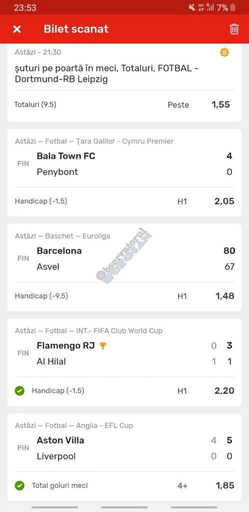 | Konyaspor- Trabzonspor | X2 și 0-3 | V |