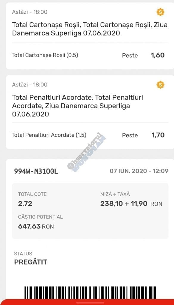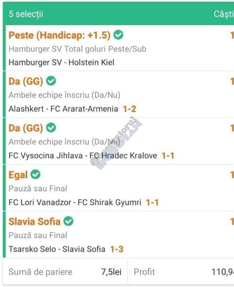 | Sepsi – Voluntari | 1X și 0-3 | X |