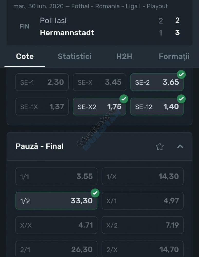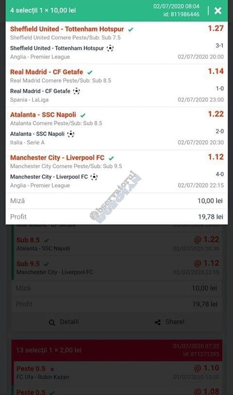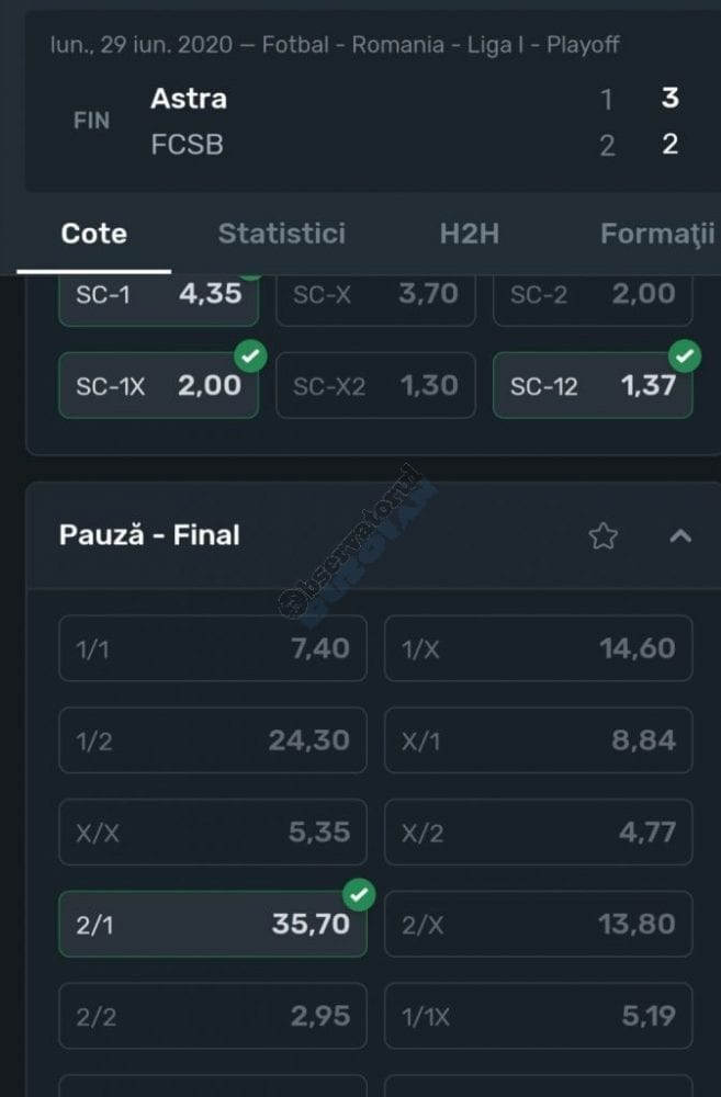 Puțini sunt cei care vorbesc de câștiguri la pariuri ca pe o chestie obișnuită, iar eu sunt sceptic chiar și vizavi de aceștia. Eu, spre exemplu, vin după trei zile consecutive pe plus, dar până atunci avusesem o serie de vreo 10 sau 11 negative, așa că ceea ce am încasat în weekend e doar o mică parte din pagubele făcute după deschiderea agențiilor terestre, nu vă lăsați înșelați să credeți că Vali Mocanu e vreun jmeker! Dăm la o parte faptul că toată lumea fotbalului mondial a revenit pe teren doar pentru pariuri, asta e deja o certitudine. Banii din drepturile TV sunt folosiți pentru scobitori, măști și dezinfectant, sunt mărunțiș pe lângă sumele câștigate pe rezultate inimaginabile la începutul unui joc sau pe scenarii fanteziste pentru sectorul on-line. Vă dau câteva exemple, dar și trei poze ca să vedeți cât de sus urcă mizele/cotele un rezultat răsturnat la pauză. Avem pe Lazio care a făcut 3 consecutive de acest gen: cu Atalanta, Fiorentina și Torino. Apoi Leipzig care în toată primăvara nu a câștigat niciun meci pe teren propriu, deși a jucat chiar și cu două dintre echipele retrogradate în 2.Bundesliga! De Liga I vă spusesem deja că urmează jalea, iar experți în pariuri precum familia prodanca+reghe (că dacă le scriu numele cu majuscule mi se usucă degetele…) sau ciobanul cu palat din Pipera, s-au umplut de bani de la reluarea sezonului. Pe Guardiola și pe Hagi nu-i mai suspectează nimeni, deja sunt arhicunoscuți în lumea făcătorilor de nefăcute. Dar ați văzut duminică modul în care s-a dat la o parte Sepsi? Sau vineri Gazul cel Metan?