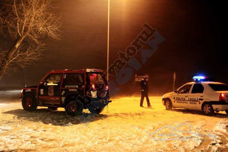 Nu este vorba despre mausoleul de la Mărășești ci de ieșirea din Buzău către Brăila unde polițiștii au instituit aseară un filtru pentru a nu mai permite accesul autovehiculelor pe DN2B. Cum ordinul se execută și nu se discută, cei responsabili cu buna circulație pe drumurile publice au refuzat să permită accesul inclusiv a unui echipaj de offroaderi care, la solicitarea unui buzoian rămas blocat la cinci kilometri de oraș, s-a oferit să îl scoată pe acesta din zăpadă. Chiar dacă intervenția celor două mașini aparținând pasionaților de offroad nu ar fi implicat nici o obligație din partea statului și cei înzăpeziți ar fi putut fi scoși mai devreme din iadul alb, acest lucru nu a fost posibil pentru că DN2B a fost, oficial, închis circulației publice și așa a rămas inclusiv pentru cei ce se doreau a fi salvatori ai celor pe care autoritățile nu au reușit să-i scoată din nămeți.