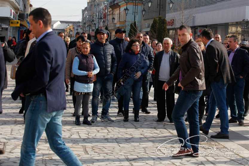 Șeful Guvernului a fost întâmpinat de câteva zeci de comercianți din Bazar, nemulțumiți de decizia edilului șef de a le desființa tarabele, în clădirea Bazarului urmând a funcționa în viitor birouri ale Primăriei.