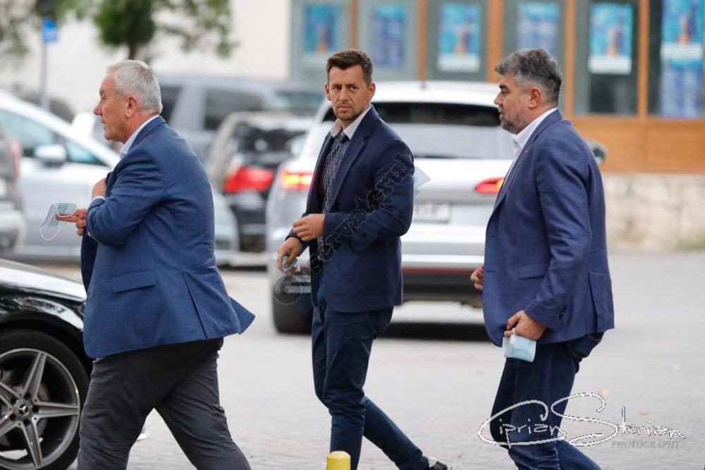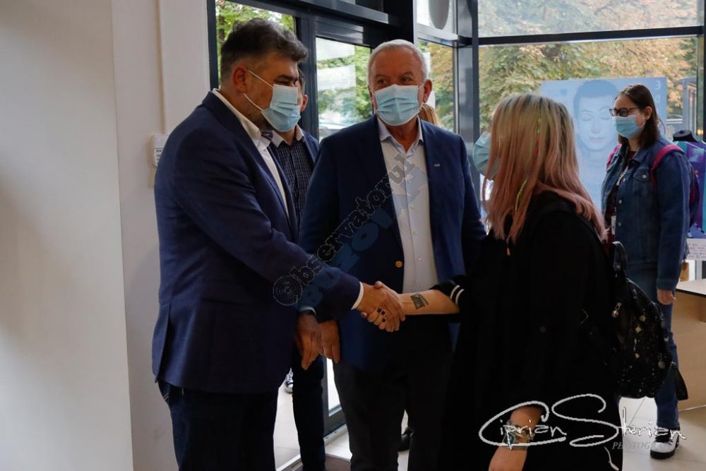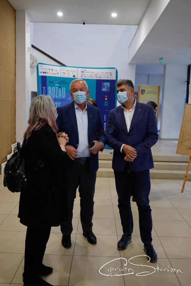 Ciolacu a ajuns la expoziția organizată la Galeriile de Artă Buzău însoțit de primarul municipiului Buzău, iar ulterior li s-a alăturat și președintele interimar al PSD Buzău, senatorul Lucian Romașcanu plecat să își găsească un loc de parcare.