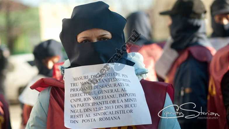 Aproximativ 70 de poştaşi, cu cagule pe faţă, au protestat joi dimineaţă în fața Prefecturii Buzău, prin afişarea unor pancarte prin care ;i-au exprimat nemulţumirea faţă de politica dusă de conducerea companiei Poşta Română.