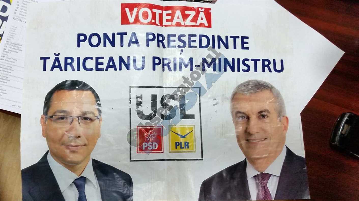 Alianța Creștin Liberală a reclamat vineri la Biroul Electoral Județean folosirea de către PSD a unor afișe electorale ale candidatului Victor Ponta alături de Călin Popescu Tăriceanu, afișe ce purtau sigla USL. Reclamația ACL a fost admisă de Biroul Electoral Județean care prin decizia nr. 54 / 14.11.2014 a constatat folosirea în mod abuziv și nelegal a semnului USL de către PSD la alegerile pentru Președintele României.