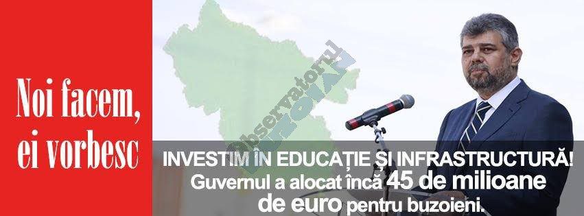 Vom folosi acești 45 de milioane de euro ca să avem toate școlile modernizate în municipiul Buzău, dar și șosele noi în județ!