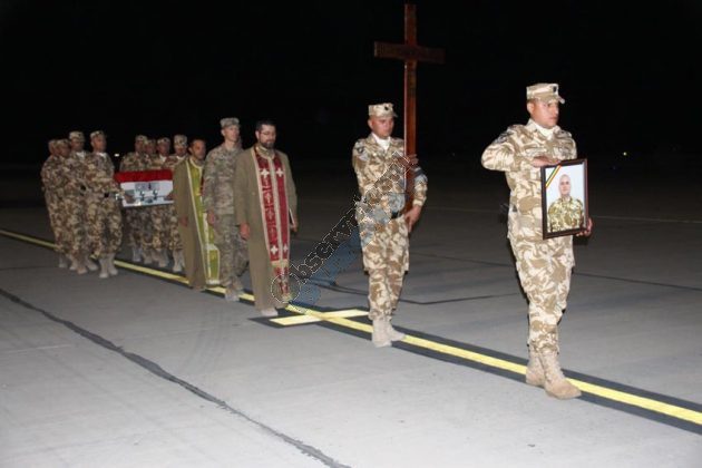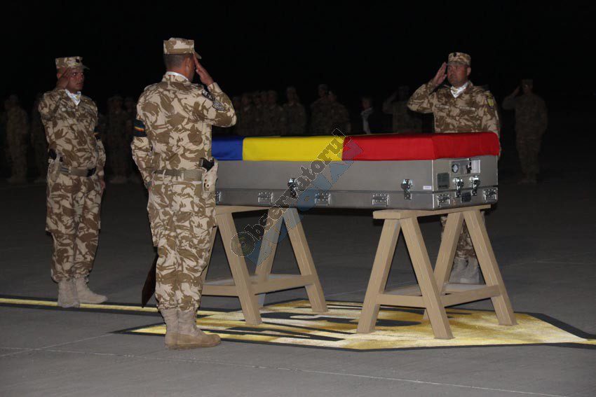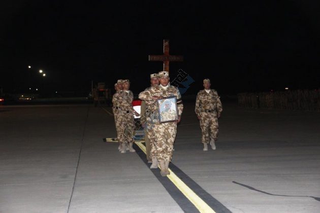 Trupul neînsuflețit al eroului buzoian Mădălin Stoica va fi repatriat luni. În noaptea de duminică spre luni a avut loc deja un ceremonial militar pe aeroportul din Kandahar la care au participat camarazii săi alături de care a plecat în teatrul de operații Afganistan.