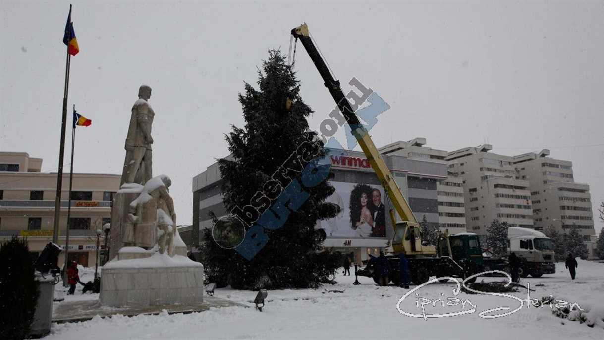 Primăria Buzău a montat, marți, un brad de aproape 15 metri în centrul orașului, brad care urmează a fi împodobit până la sfârșitul săptămânii când se dă drumul oficial iluminatului de sărbători.
